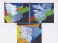 We estimate an overall reduction of NOx by 10% and particulates even more and an improvement in efficiency 2-3%. Too see a visual example of the quality of the mixing the attached #1 chart show the DNS analysis of instantaneous flow fields near the grids: a biplane grid, b composite grid, c fractal grid. Planes show velocity and pressure profiles, graph taken from pp 60 of book.
