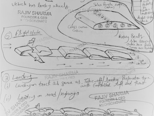 1. Main vehicle/ engine with electric or fuel powered thrust engines, fold-able wings. To move or run the vehicle on road surface or track surface four powered wheels are there in the vehicle.