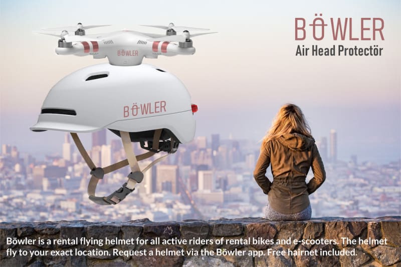 1) The Böwler Flying Helmet combines a drone and a safety helmet into one single product. It provides head protection whenever it is needed.