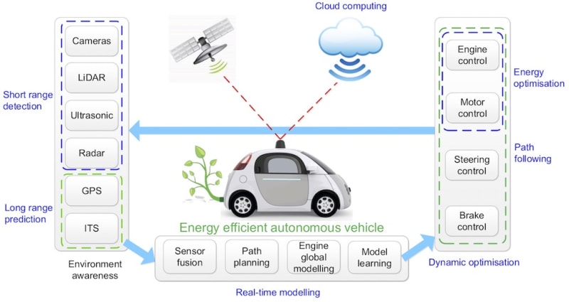 There are two ongoing revolutions in modern automotive industry. The first is the development of autonomous vehicles which is leading to greatly improved safety, traffic economy, environment and passenger comfort. The global autonomous vehicle market is estimated to be $54.23 billion in 2019, and is projected to achieve $556.67 billion by 2026. The second is the development of green propulsion systems, envisaging improving fuel efficiency. For example, in the US, the average on-road fuel economy of new cars and light trucks is expected to be 36-37 miles per gallon (mpg) by 2025. In comparison, the average of today’s on-road fleet is 21 mpg. The intersection of the autonomous vehicles and green propulsion systems is the future trend. However, there is a big challenge that the environment information collected by autonomous vehicles is poorly used in propulsion systems. Only few examples of using environment data to optimize energy efficiency can be found, although the potential benefits in fuel reduction and mission flexibility are great.