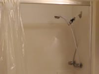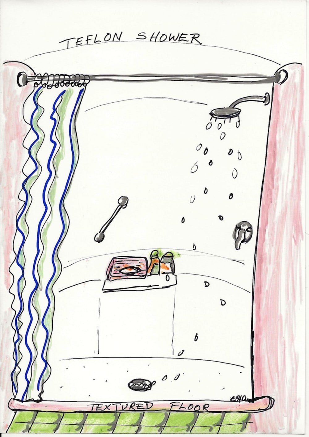Cleaning the shower should not be hard for anyone. A Teflon- or ceramic-coated shower would repel water and dirt from the surface walls. Who wants to spend an hour scrubbing dirt from scum ridden walls? A shower is a space in the bathroom for humans to use for personal cleanliness. Why use the area for a nuclear attack on the walls with a scrubbing chemical bomb? Life is too short for that. Help keep the sewer free of chemical cleaners. Manufacture a shower with slick walls where no soap scum can dwell and no bleach is needed to kill the stains.