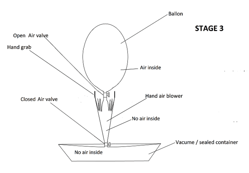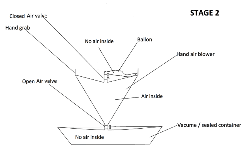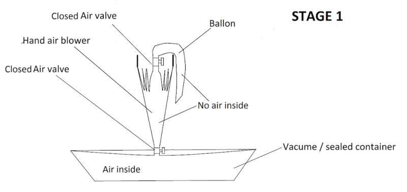 Preservation of food and beverages is very difficult. One way of preserving is placing inside a vacuum container or seal. There are many types of vacuum seal but all of them are digital or run under electric power or motor. This is not feasible for home use because the price is expensive; its mechanism is complicated and so on. This device solves these problems. It can create a vacuum in a sealed container without using electric power or a motor which means it is manual. The device consists of a sealed container, hand air blower with two openings, two air valves and a balloon. And the mechanism is simple, first seal the container with a customized plastic bag which has an opening at the top and sealant at its edge. Next, attach empty (no air inside) air blower to the sealed container. The attach a balloon with the empty air blower. at this point, both of the air valves are closed. Then, open the lower air valve and suck out the air in the sealed container and close the lower valve. Next, open the upper valve and push the air to the balloon or the upper direction. Finally, repeat these steps until the sealed container is air free or vacuumed.