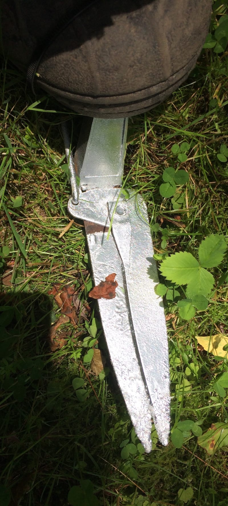 Easily attachable to your boots/gardening shoes, every time you step down closes the clipper and cuts the grass. When you lift your feet, a spring under your boots opens clipper while the other foot does the clipping.