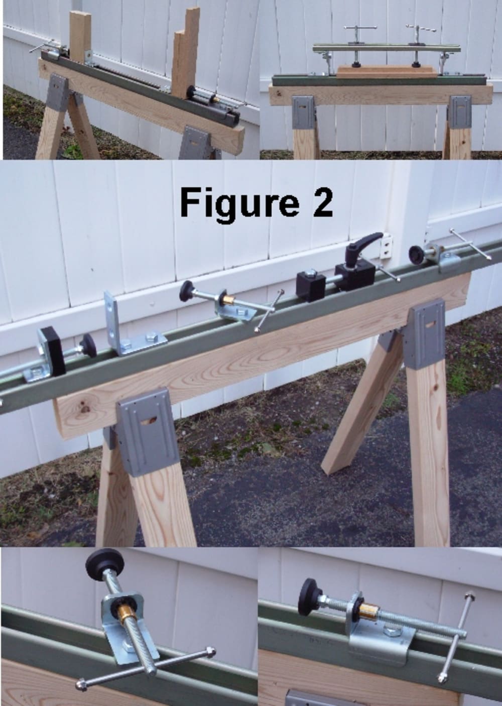A primary advantage of the strut channel clamp is the ability to position the clamp block and clamp stop anywhere on the strut channel. All versions of the clamp take advantage of the fact that the open side of a typical strut channel provides an endless adjustment slot. The side opposite the open side of the strut channel (bottom) has either slots or holes. These features make it possible to mount the strut channel to sawhorses or shop tools (Figure 2) or make special jigs and fixtures (Figure 3).