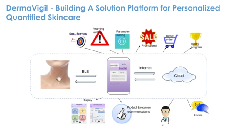 BelleT has developed a comprehensive skin monitoring system that can monitor skin conditions (at various body locations: face, neck, hands, body and hair etc.) from multi-aspects including skin moisture and glow, UV exposure, skin and skincare product pH values, to provide personalized optimal guidance and recommendations.