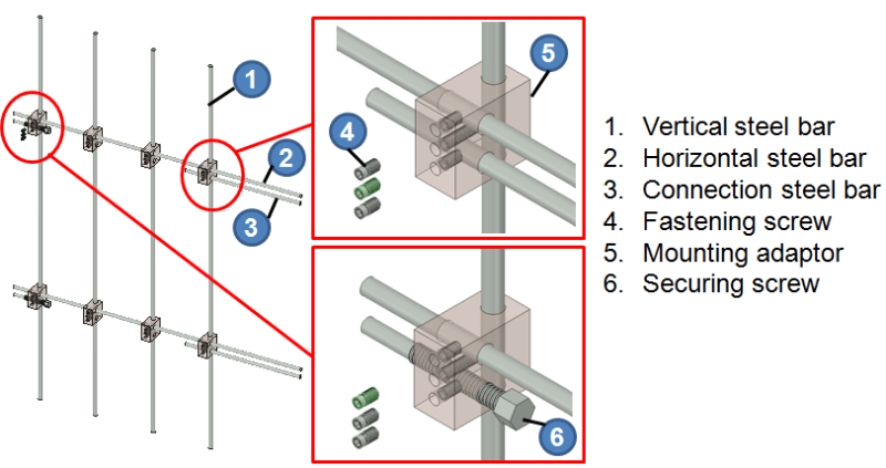 FATWIG have many advantages over current approaches. First, FARWIG is easy to manufacture. The steel bars are commercial off-the-shelf (COTS) and can be cut into different dimensions with a saw machine. The mounting adaptors can be fabricated from aluminum blocks through drilling and thread tapering. The screws are COTS standard parts. Second, current window guards are permanent installation and require either window frames or mounting fixtures both of which need to drill the wall for installation. FATWIG does not require any work on window walls. They are secured by four long securing screws through unique mounting adaptors. Third, installation of current window guards on large windows requires at least two people, while FATWIG requires only one person to install since all steel bars are connected through unique mounting adaptors and they are assembled piece by piece easily. Fourth, current windows guards are designed for certain sizes of windows while FATWIG is scalable and can be configured to fit any sizes of windows. Fifth, FATWIG consists of only steel bars, mounting adaptors, and screws; it can be packed into a small package for easy transportation and easy storage. Sixth, due to its simple design, small number of components, and easy assembly and installation, the overall cost is much lower than current window guard installation.