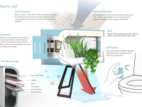 Purifier, an air conditioner for bath and toilet, detects the smell, temperature, humidity, and user's activity via electronic nose, temperature, humidity, and infrared sensor. Equipped with AI data analysis for air convection, purification and deodorization, it adjusts the temperature and humidity for different users and releases the fragrance. It utilizes the water of self-dehumidification to go through electrolysis and produce bactericidal liquid to eliminate the cause of odor; plants and photocatalyst systems on it can clear the odor. Purifier brings greenness to the bathroom and creates comfortable and healthy experience.