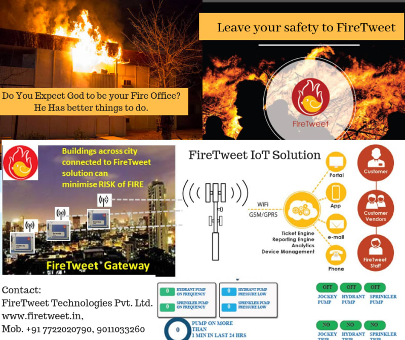 FireTweet Technologies. We have developed a cloud based IoT (Internet of Things) solution to address the problem of non-functional fire safety systems and equipment installed to safeguard your people, vast premises and costly assets.
