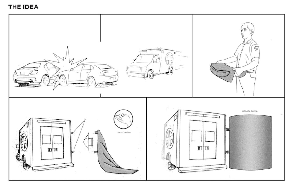 The solution to this issue would be to design a barrier that offers privacy to prevent other motorist from looking at a current accident scene. It can be deployed in seconds! Moreover, it can be easily snap-fitted to fire trucks or ambulances.