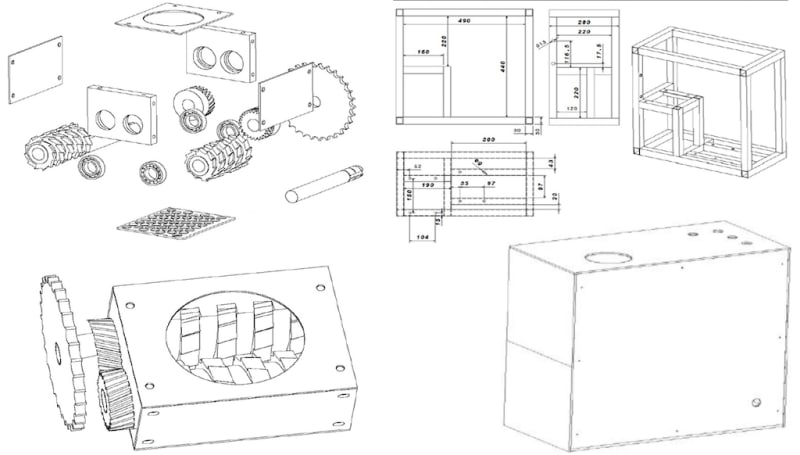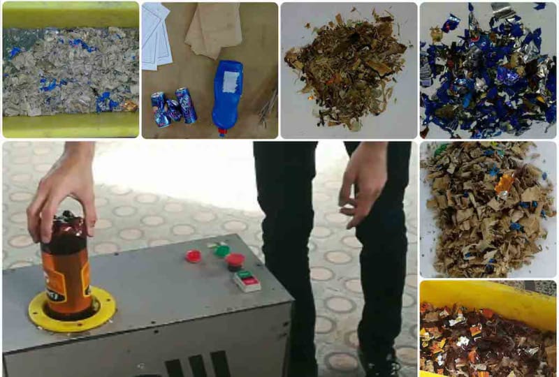 Bottles of water and aluminum/paper cans are inserted into the machine, shredded by blades and collected in a local area to be used later for recycling. The raw material is made up of bottles and cans in the streets and houses and trash cans. This machine consists of two parts: mechanical and electrical, the main focus of this project is on the mechanical part. Due to the dimensions of the cutting (2*2 cm in size and adjustable to different dimensions with roasting or square forms), which, in addition to easier transportation of crushed material, occupy less volume and result in increased quality of recycling.