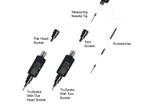 TruSpoke can be used with any existing 3/8th rachet such as impact wrench and torque wrench. Because TruSpoke is designed to work with standard tools, the fastener tips can be replaced with any driver tip such as Torx bit, screw driver bits and even open standard sockets. In addition, the measuring tip can be replaced with multiple sizes, types and lengths of measuring indicators.