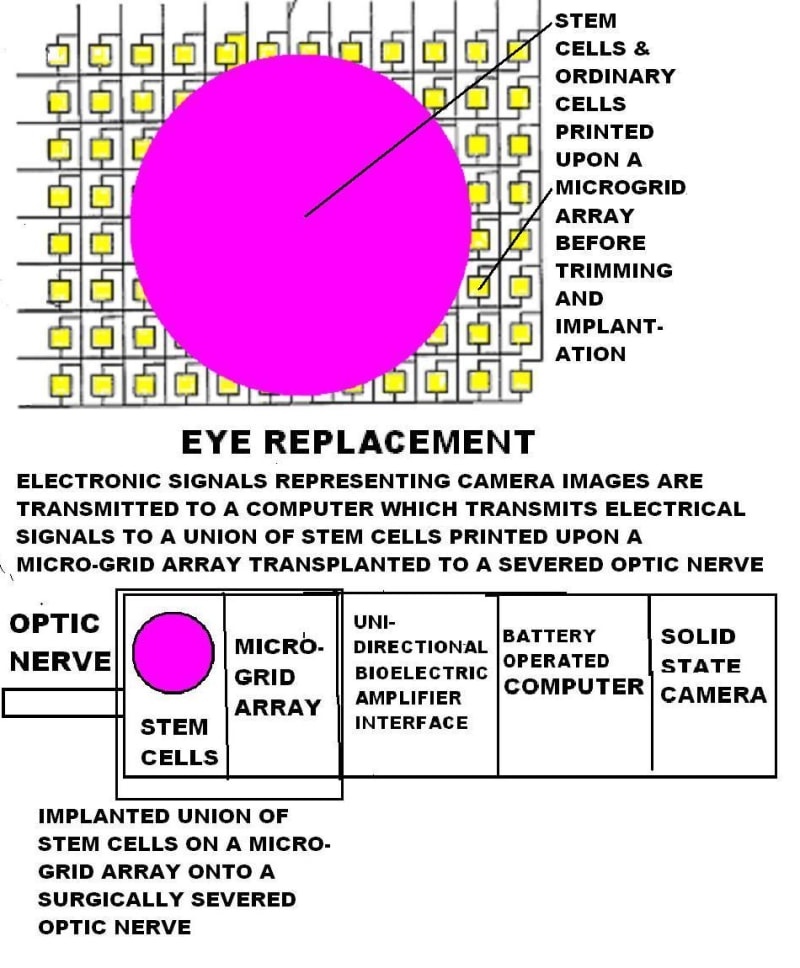 Using this method, the optic nerve, retina, spinal-cord, brain, heart, lungs, liver, kidneys, pancreas, thyroid, blood vessels, muscles, skin, and other human body organs or parts can be connected to, interfaced with , and combined with electromic circuits and optical systems.