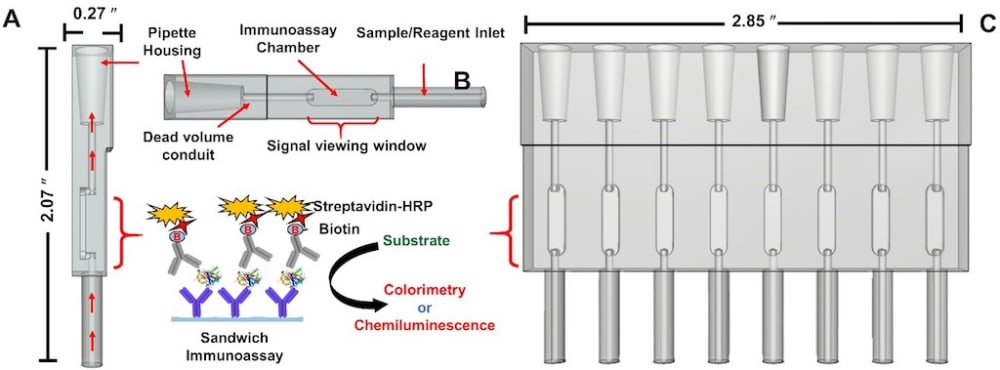 Pipette-tip adapters represent the first engineering advancement in decades-old well established diagnostic technique "ELISA." Tips were produced using a desktop 3D printer and were designed to fit most commercially available bench-top pipettes. Unlike ELISA which require extensive training and specialized technicians, pipette-tip ELISA users needs to know basic pipetting techniques. In addition, washing procedures, dispensing reagents and samples in pipette-tip ELISA does not require bulky, expensive and sophisticated equipment usually required in traditional ELISA.