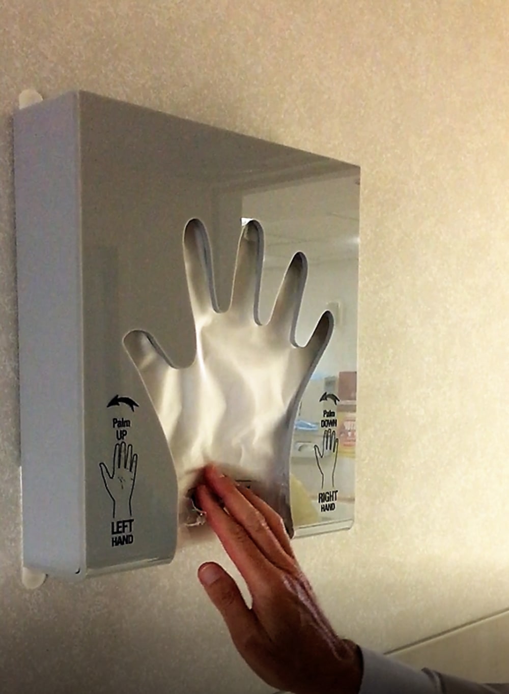 Glove use is an attractive strategy because it is a highly effective measure for preventing HAI’s in patients, staff and visitors. At present, “clean” disposable gloves are available in most healthcare settings and, in fact, they are required when caring for patients who are infected with serious pathogens transmitted through contact (e.g., C. difficile or methicillin-resistant Staphylococcus aureus). However, there are limitations to the more widespread use of these disposable gloves which include their lack of ease of use, difficulty in putting on (donning) and taking off (doffing) each glove and cross contamination (using one hand to put on the glove of the other hand).