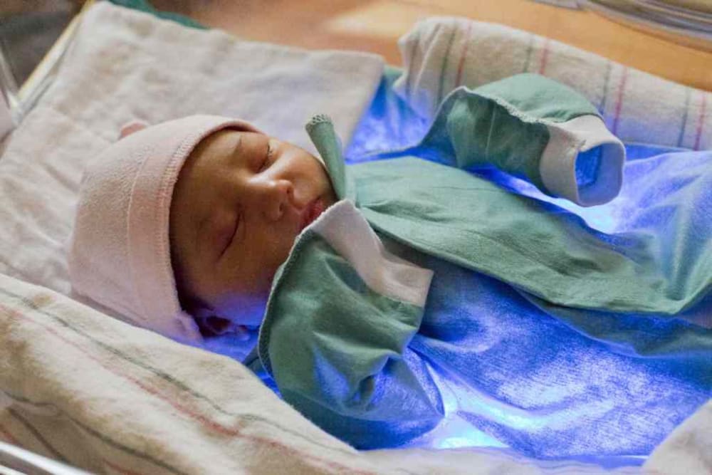 Babies with neonatal jaundice may be treated with colored light called phototherapy, which works by changing trans-bilirubin into the water-soluble cis-bilirubin isomer. The phototherapy involved is not ultraviolet light therapy, but rather a specific frequency of blue light (459 nm light wave).