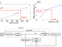 The self-powered embedded sensor will be instrumented in TKR between the UHMWPE bearing and the Tibial tray, Figure1. It consists of a package designed with mechanical springs. Two identical triboelectric generators and power digitizing circuit embedded in knee implants inside the package. The generator consists of an upper electrode with micropatterns and the lower electrode of an insulator with reverse micropatterns bonded to another lower flat electrode. The generated power output is proportional to the load applied, where higher power can be generated with more applied force. 6 µW of power was generated under equivalent gait load of 2.3 kN, Figure 2. Since the power generated is proportional to the amount of load being transferred to the knee implant from activities of daily living, it can be used to simultaneously measure the applied forces. Our group designed frontend electronics to digitize the load data that consumes about 4.56 µW. These findings support that triboelectric power generation can be a viable technique for harvesting energy to power load sensing devices for TKR applications.