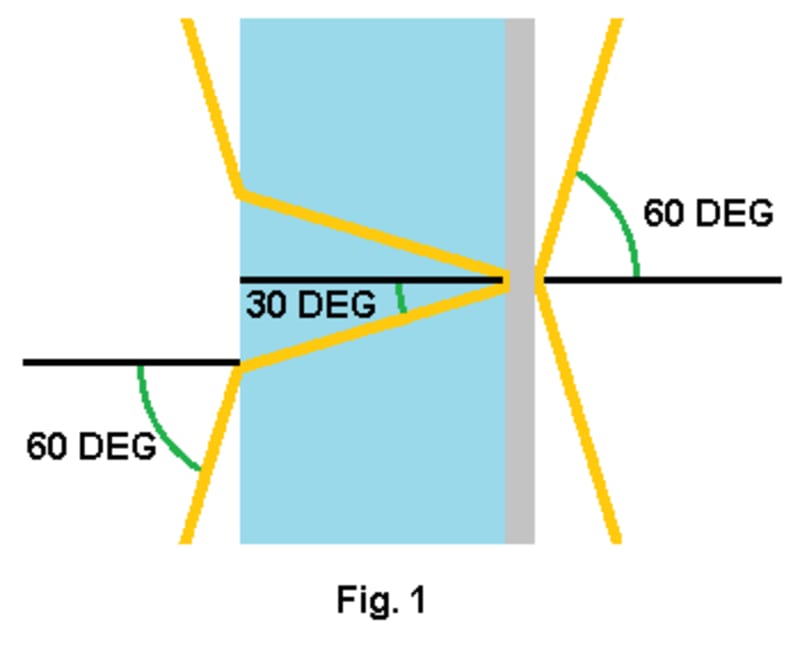 Refer to Fig. 1; it illustrates the paths of an average pair of equal and opposite photons of the Quantum Flux. Both photons approach the system at 60 degree angles; however, the photon on the left enters a refractive material (blue); look at how this bends its path so it strikes its side of a double mirror at a steeper, more-perpendicular 30 degree angle. The refracted photon strikes its side of the mirror harder than the other photon which glances off the bare side of the mirror at a much shallower 60 degree angle. Therefore, the mirror will move to the right.