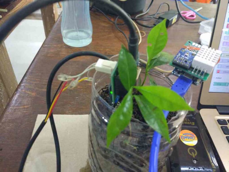 A network sensor system consisting of arduino , a device NB-IoT and Node-RED programmed in the Linux operating system (OS) on computers are used to collect air temperature data, air humidity, light intensity, soil temperature and soil humidity, pH, and NPK. Data transmission sensor uses a communication protocol type Message Queuing Telemetry Transport (MQTT) to a gateway programmed using Node- RED. By using the MQTT protocol, communication between the microcontroller and mobile apps or computers can be done wirelessly. Block diagram of data collection, consisting of array sensors connected to the arduino and NB-IoT called network sensors, Node-RED, cloud, local database, visualization and computational modeling. Sensor data from the microcontroller is sent to the gateway so that the data can be sent to the cloud and stored in the local database. Sensor data stored on the local database can be used for visualization process in real time. To do computational modeling, sensor data can be accessed on local database.