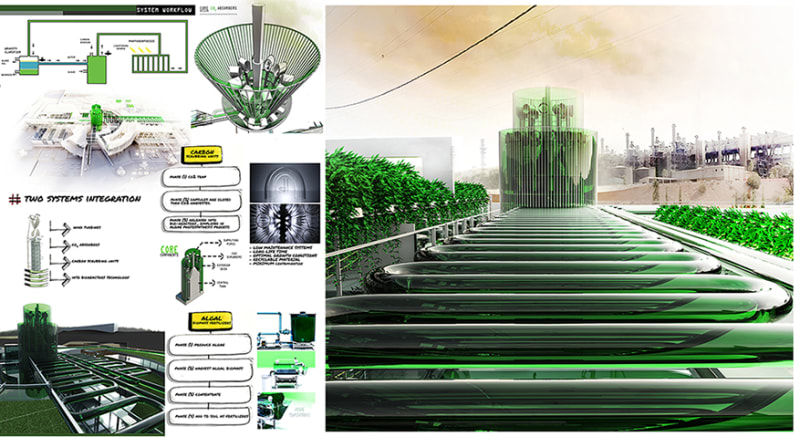 -Opportunities by developing green technology to capture carbon dioxide emissions from coal-fired power plants, using algae. Set out to demonstrate that an algae-based system could recycle the carbon dioxide in flue gas. Scientists looking for ways to curb carbon dioxide emissions have taken a keen interest in algae. These simple plant-like, aquatic organisms — their family includes both pond scum and seaweed — are among the oldest forms of life on Earth. Like plants, they draw energy from them.