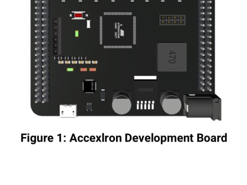 Accexlron is a rapid prototyping micro-controller development board based on the high-performance RISC architecture based ATmega 2560. The board comes with a host of functionalities like: Built-in motor driver circuitry, Bluetooth and Wifi Plug--n-Play compliancy. Higher voltage and current thresholds, Greater Sketch Size and Higher Throughput of 16MIPS at 16Mhz clock speed.