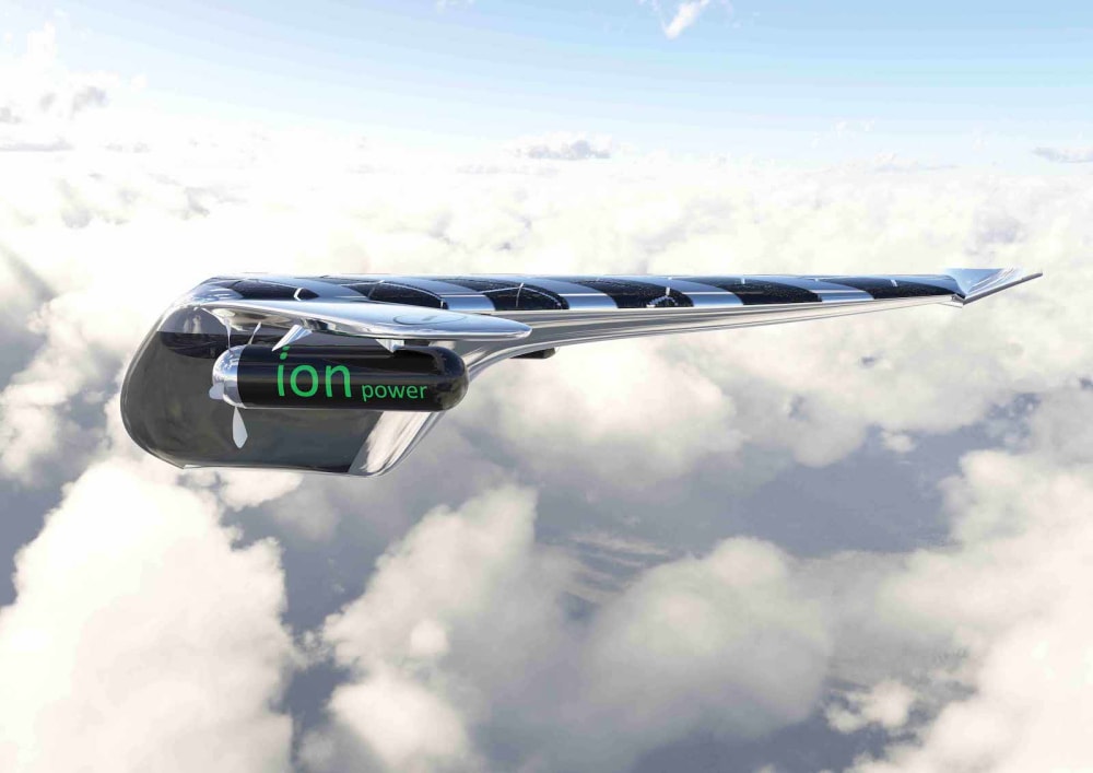 The "I Jet" is a fully electric private plane that recharges itself using ion collectors to harvest electric energy from the atmosphere. These ion collectors situated on the top of the plane are carbon/graphite/graphene based. According to the proof of concept by the ion power group, ion collectors 130 feet above the ground at peak ion periods have been seen to generate a peak electrical power of 1.236kw derived from 41,200 volts at 30ma and these values increase at the rate of approximately 90-150vdc per meter of altitude above sea level.