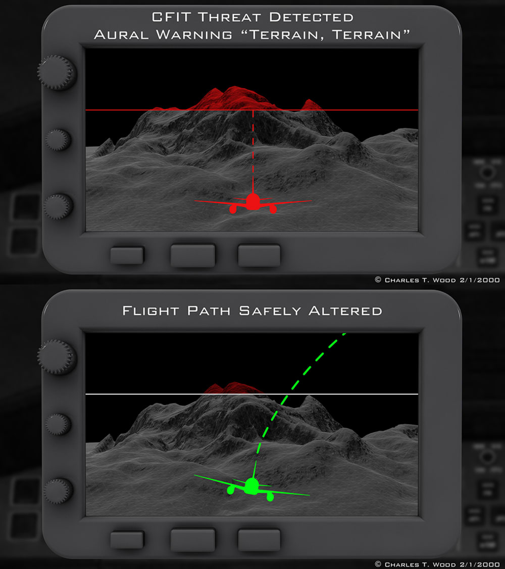 Most CFIT accidents were caused by a lack of pilot situational awareness; The pilots didn't know where they were relative to terrain/obstacles. In the case of the AA Cali CFIT accident, the terrain was too steep for the state of the art Ground Proximity Warning System (GPWS) to give the crew a timely warning. My concept improves situational awareness by providing a 3d picture of airplane position, terrain/obstacles and visual predicted flight path that can be altered by maneuvering the airplane.