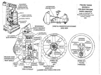 Oblique Command Module (CM) horizontal crew decks have storage under floor. Side hatch for tower access and crew recovery; horizontal air bags or flotation a la Gemini. CM reenters Earth's atmosphere or carried back in a payload bay. Twin pilot seats elevated to meet rendezvous windows; center aisle.