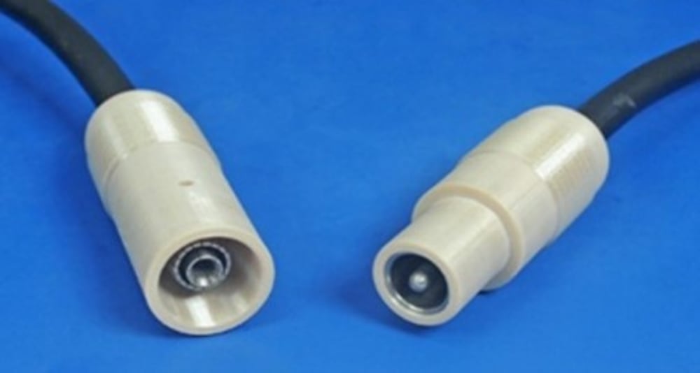 NiobiCon™ can be used in many forms to include a charging station concept for unmanned underwater vehicles shown in Figure 1 that uses continuously-powered open rails on which the vehicle sets down on to recharge, or a commercial-style USB connector shown in Figure 2 that can transfer data or high-definition video when connected underwater, or a high-power coaxial connector shown in Figure 3 that can pass over 2.75 kW of power underwater. The first commercial prototype was used to connect the tethered electrical cable to a remotely operated vehicle as seen in this NiobiCon™ video.