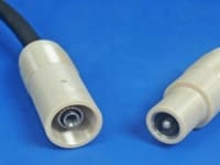 NiobiCon™ can be used in many forms to include a charging station concept for unmanned underwater vehicles shown in Figure 1 that uses continuously-powered open rails on which the vehicle sets down on to recharge, or a commercial-style USB connector shown in Figure 2 that can transfer data or high-definition video when connected underwater, or a high-power coaxial connector shown in Figure 3 that can pass over 2.75 kW of power underwater. The first commercial prototype was used to connect the tethered electrical cable to a remotely operated vehicle as seen in this NiobiCon™ video.