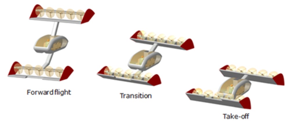 - Same propulsion system is used for vertical flight as well as for forward flight