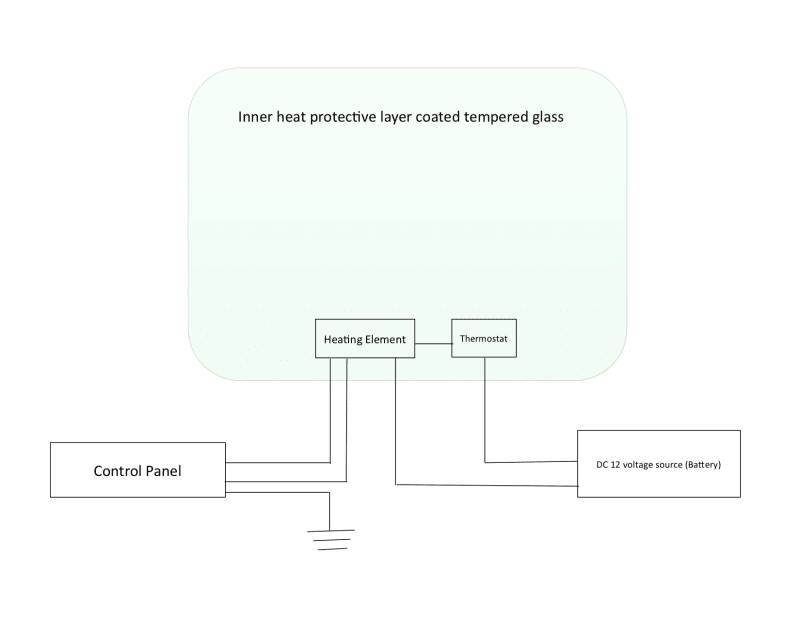 Thermostat helped to control the glass surface temperature to prevent freezing point.