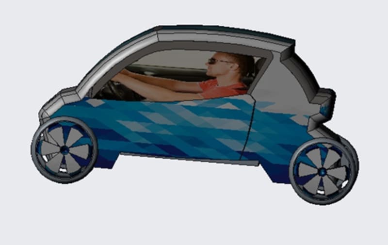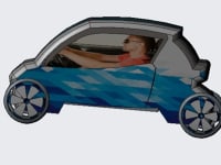 Features of the electric car: the electric car body does not have large bends, there is no door handle (opens using a special manual button), the electric car is double, is charged with electric energy, as well as solar energy and does not pollute the environment.