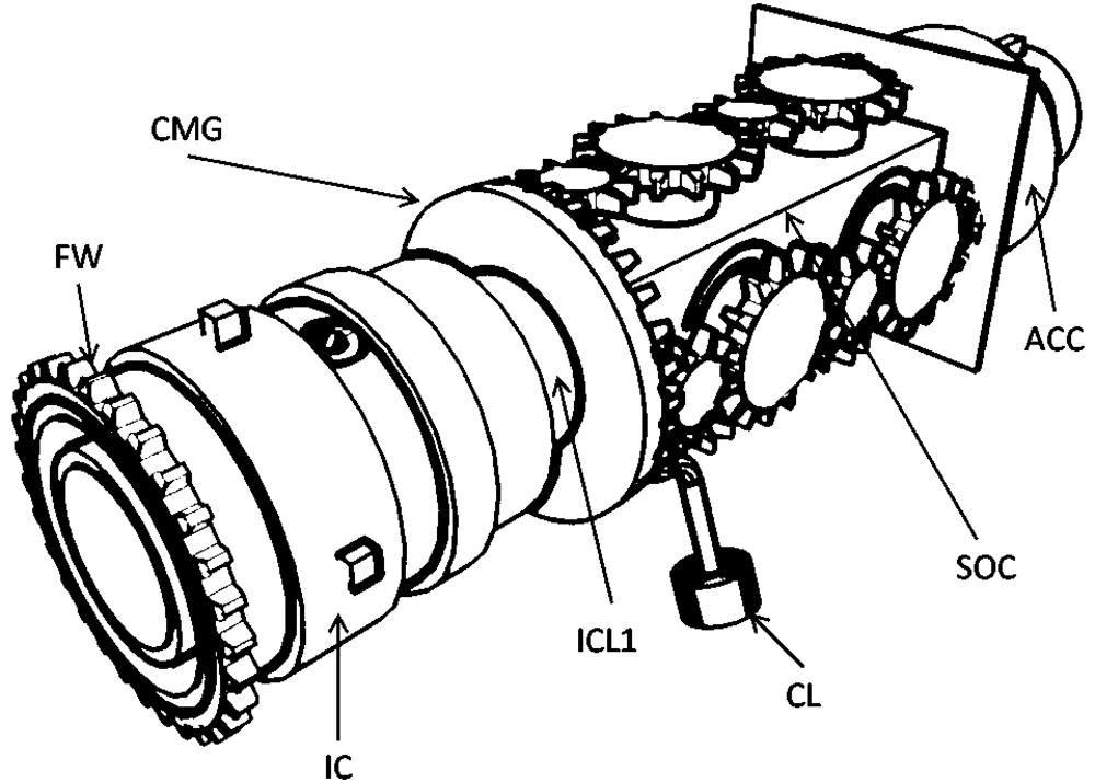 Combustion chamber have a crown gear coaxially mounted on its rear side which is coupled to gears on four sides of (SOC).