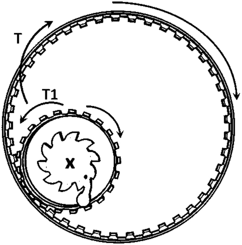 This drive mechanism does not use chaindrive or shaftdrive but has efficiency as chaindrive (in terms of gear teeth engagement) and requires less frequent maintenance. It also provides gear ratio.