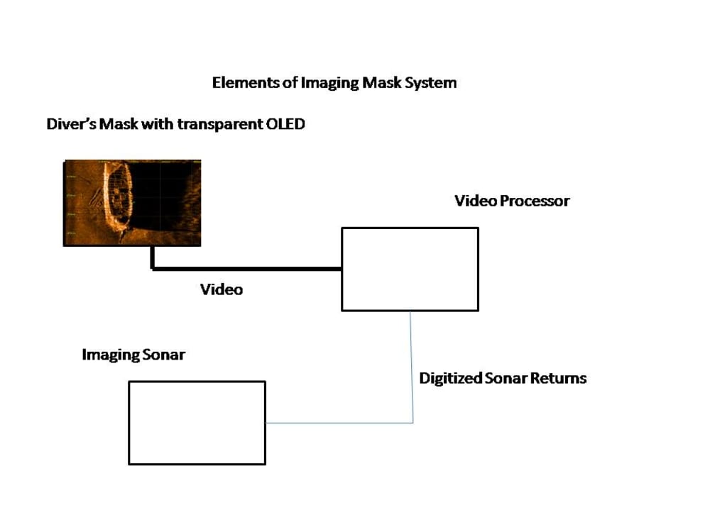 Sonar images could be presented on a organic led emitting diode screen which replaces the diver's normal mask. The proposed mask covers the entire view of the diver. If the diver switches off the sonar, the visor is transparent.