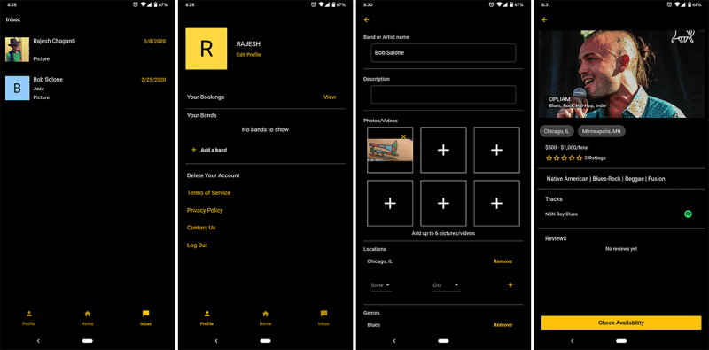 The app is designed to help up and coming artists who cannot afford to have managers right away and acts as a database to the general public to access musicians/bands that they did not know existed.