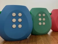 This is pocket size, rechargeable device with 6 Braille alphabet simulation buttons on top and 4 operations buttons on side. There are 8 games playing using top buttons. There are 4 games multiplied by 2 for digits and letters.