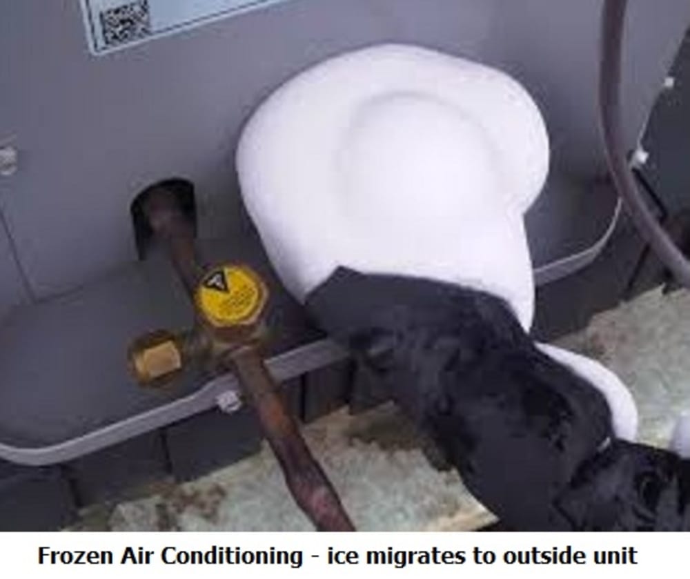 Damage to hardwood floors and ceilings can also be the result. A clogged filter can cause this icing too. An outside unit that keeps running (due to a stuck relay) will be reported. A failing compressor can be reported if Freon is low or if an expected temperature of a running system is not realized.
