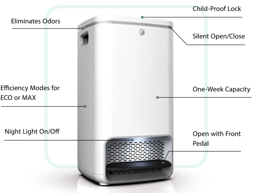 On the inside, Petal combines vacuum insulated panels with vapor-compression refrigeration technology and an innovative design architecture to perform as a hybrid freezer/waste bin at a shocking level of efficiency (less than $1 per month) – naturally stopping odors and putting germs on ice, in a convenient, easy-to-use form factor. Its frigid temperature ensures that nothing leaks or sticks to the reusable plastic pail, eliminating the need for landfill-clogging, single-use plastic liners.