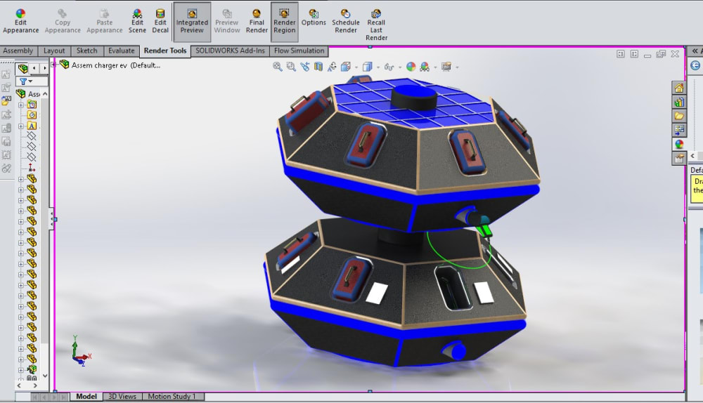 This design is extremely compact and can store up-to 12 Batteries at once and even charge them. The materials used for outer body are lightweight Aluminium and High grade Plastics, Whereas the plate on which the upper Hexagon is mounted is of Low Carbon Mild steel material in order to give good or best weldability to the Cylindrical rod of the same material. This also makes the product cost efficient and extremely easy to use. The revolving Hexagons will be made Autonomous, hence with the help of the Battery data the system will predict which Battery is ready to be swapped and the Hexagon disk will be rotated accordingly and brought in front of the user for him to remove. This is another stepping stone in achieving Sustainability and a Greener Earth!! #goElectric #goGreen