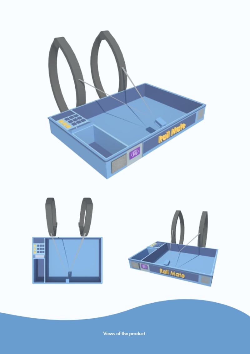 Railmate is a tray designed for the hawkers by following user research methods. The problem has been noted down and tried to solve it. The problem faced by them was to hold the tray which is solved by adding a cushioned strap. This lets the users use their hands-free as the tray is held by the straps. Being able to use both hands gives the user freedom and allows him to do his tasks quickly and efficiently. The other features added in the Railmate tray are having a calculator, for quick and accurate calculations. A speaker is connected to a smartphone through an application. As the hawker has to continuously scream their products to sell it can become a throat problem, screaming the whole day. So a speaker has been attached which does the work more efficiently and smartly. Other small improvements are having a QR code in the front for easy online payments. The tray is designed in such a way that when it’s not in need it can be folded and used as a bag on the back. This tray will help the hawkers to improve their efficiency and have less impact on their bodies. The selection of materials is also made according to the usage and user group making it efficient and comparatively less expensive.