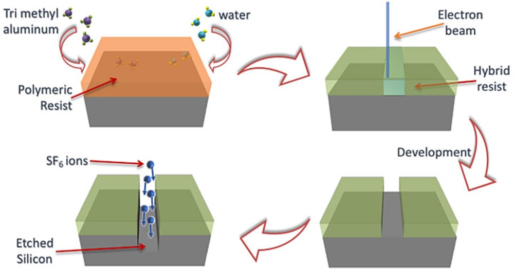 Conventional resists require complex chemical synthesis. Moreover, resist performance parameters—including critical dose, exposure contrast, and etch resistance—cannot be easily tuned per application. For example, high resolution and high contrast are needed to pattern logic devices, whereas high etch resistance is needed to pattern 3-D-stacked memory devices such as flash memories. The infiltration-based hybrid resist platform overcomes these challenges by leveraging ALD tools found in almost every nanofabrication facility and low-cost materials.