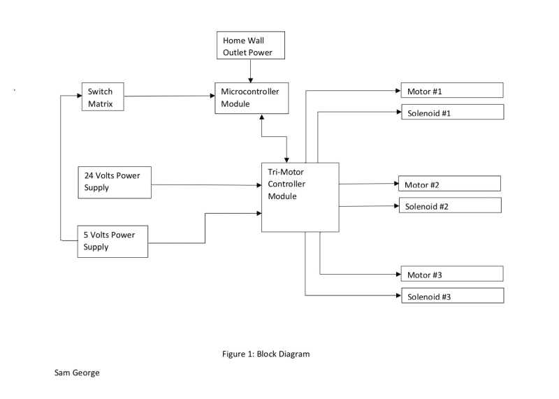 I procured the system components in the following manner. I procured the stepper motors from Lin Engineering. I procured the solenoids from Amazon. I procured the microcontroller board from Axiom Manufacturing. I designed the PCB layout of the Tri-motor controller board, using layout software (provided by ExpressPCB) and evaluated and assessed all the ICs and all the values of the circuit components, such as the resistors, the capacitors and the diodes. The circuit components and the components for the switch matrix were procured through an online electronics distributor. And the Tri-motor controller PCB was manufactured by ExpressPCB. After obtaining the Tri-motor controller board, I hand-soldered all the components; however, this can be performed by a PCB Assembly provider or a specialty electronics manufacturer.