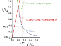 The Slope (SSpring) of the Spring Force Fs vs. gap G is the mirror image of the slope of the Magnet Force Fm vs gap G: