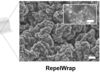 The RepelWrap has demonstrated remarkable properties in repelling a wide range of liquids including water, hexadecane, and blood with contact angles and sliding angles of 154°, 124°, 144°, <5°, respectively, indicating that liquid contaminants roll-off of these surfaces instead of sticking on them. The RepelWrap was tested with Pseudomonas spp. and methicillin resistant Staphylococcus aureus (both high priority pathogens by the World Health Organization), as well as the human simplex virus (HSV). The RepelWrap significantly reduced pathogen transfer and completely suppressed biofilm formation.