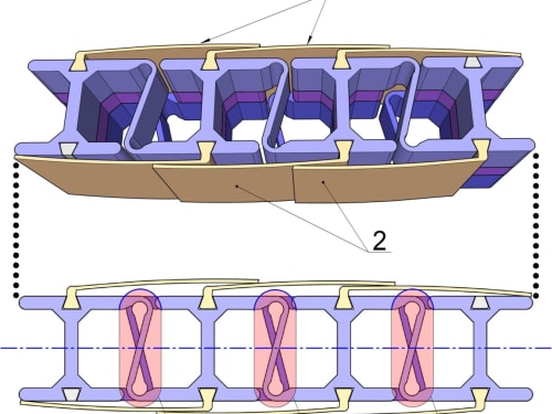 The result of this work is the technical implementation of the idea of a reconfigurable elastic-deformable panel that has a continuous smooth shape of the cover surfaces when the panel is deflected by a certain angle and at the same time able to perceive a given normal load.