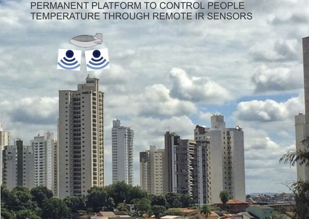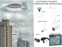The airship would fly above cities , at safe distance and deploy a cable connected sensor that would be positioned close to buildings and would measure body temperature of its inhabitants, detecting those with suspect conditions.