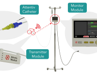 The Attentiv Catheter is a world-first monitoring solution for IV infiltration that utilizes root cause detection to seamlessly integrate and alert caretaker staff of intravenous delivery complications. Comprising a disposable sensor-embedded catheter, a reusable impedance analyzer transmitter module, and a centralized monitor module, our device removes risk and liability for overworked nurses in tracking IV infiltration.