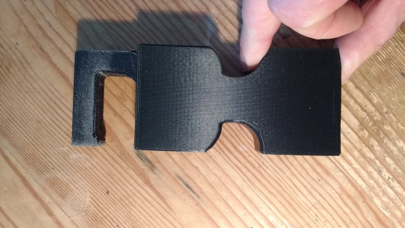 A simple rugged polymer body, hook and button can be injection moulded at low cost. The only other component is the retraction spring, which is a standard light weight stock spring.