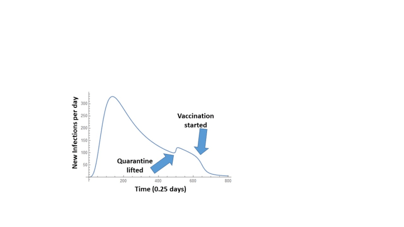 We proposed and demonstrated the application of the pandemic evolution model based on the new Pandemic Equation. The Pandemic Equation is the modified rate equation with slowly varying parameters. This approach is similar to the adiabatic approximation in quantum theory of solids. The unique features of our approach is having a limited number of the pandemic curve evolution parameters with an easily understood meaning and straight forward parameter extraction. These parameters are directly linked to the mitigation measures, to the introduction or removal of the quarantine, and to the effect of vaccination when and if introduced. The mitigation measures affect the growth time constant in the mitigation equation and result in an asymmetric pandemic curve with a steeper rise than a decrease. The quarantine removal and business opening lead to a spike in the pandemic curve predicted by Pandemic equation. The effective vaccination reduces the new daily infections described by the Pandemic equation to nearly zero. The pandemic curves in many localities have similar time dependencies but shifted in time. The Pandemic Equation parameters extracted from the well advanced pandemic curves can be used for predicting the pandemic evolution in the localities, where the pandemics is still in the initial stages. Using the multiple pandemic locations for the parameter extraction allows for the uncertainty quantification in predicting the pandemic evolution. Future work will use Artificial Intelligence to train the Pandemic Equation model for the parameter optimization based on the history of multiple pandemic locations. The Pandemic Equation parameters are extracted from a number of well-developed pandemic curves for the localities such as New York City, Italy, Spain, or Belgium. The extracted parameters are then used to generate the range of the pandemic curves for the locations, where the infection cases are still growing and/or for smaller communities. This approach allows for the uncertainty quantification in predicting the pandemic evolution in the localities with the pandemic on the rise. The Pandemic Equation parameters are directly related to the infection pool and to the mitigation measures.
